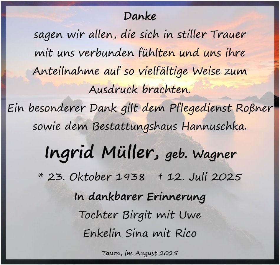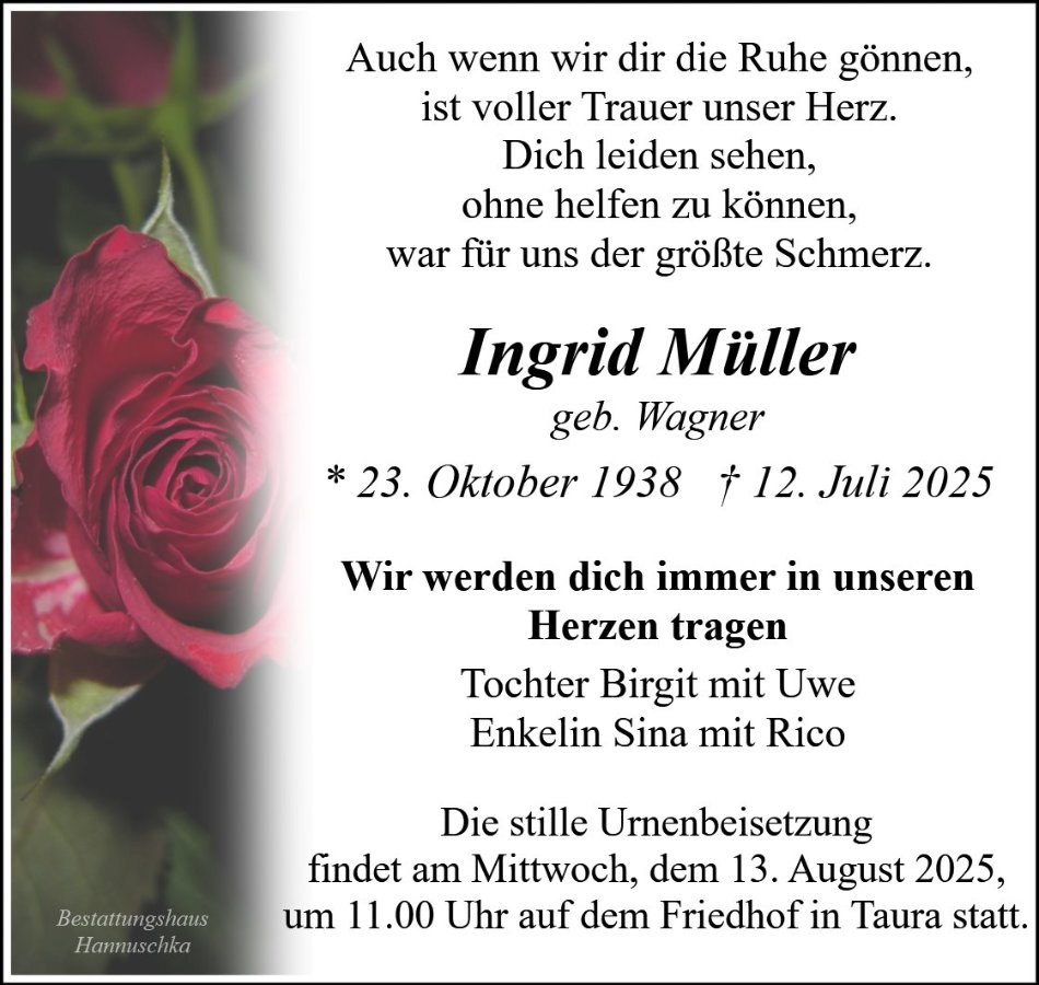 wir wünschen Ihnen von Herzen viel Kraft, dass Sie Menschen um sich haben, die Ihnen in dieser schweren Zeit beistehen und Halt geben. Zusätzlich können Sie auf dieser Gedenkseite Erinnerungen teilen und so das Andenken gemeinsam wachhalten.
