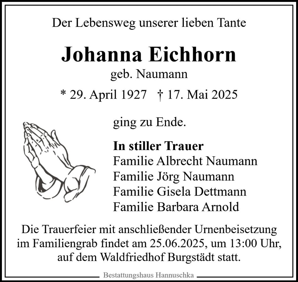 Johanna Eichhorngestorben am 17. Mai 2025